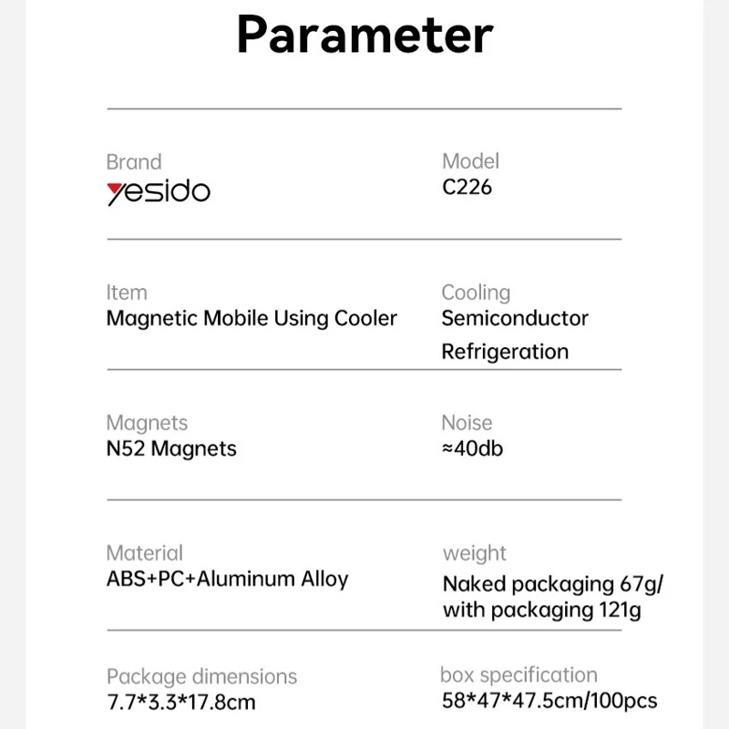 فن خنک کننده گوشی مگنتی یسیدو Yesidoمدل C226