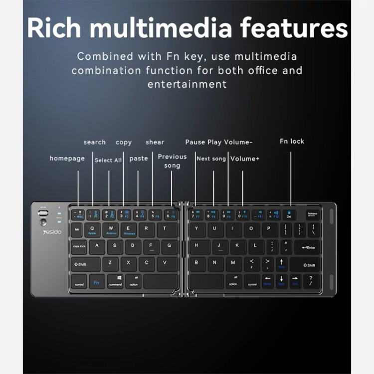 گجت کیبورد بیسیم وایرلس بلوتوثی تاشو Yesido مدل KB27