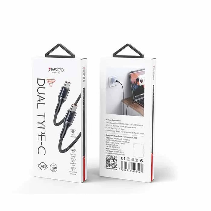 کابل تبدیل تایپ سی به تایپ سی Yesido مدل CA166 PD3.1 با طول 120 سانتی متر