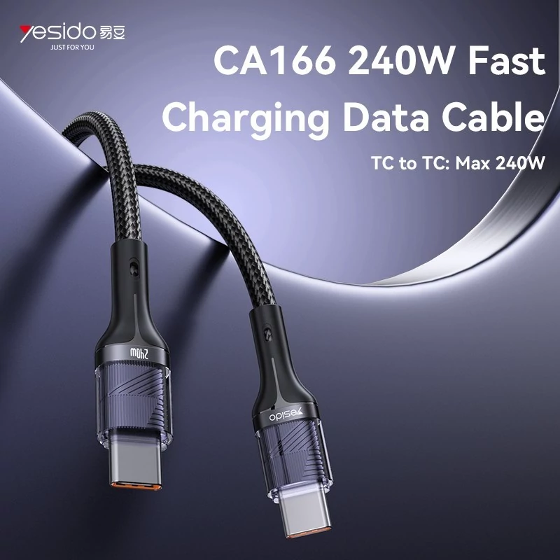 کابل دو سر تایپ سی فست شارژ 240 وات یسیدو CA166 طول 1.2 متر
