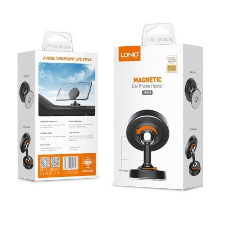کمپانی الدینیو محصولی به نام هولدر گوشی داشبوردی LDNIO MG08 Magnetic Car Holder را تولید کرده است که مناسب نصب روی داشبورد بوده و امکان یک رانندگی امن را برای شما فراهم میکند. بدنه هولدر آهنربایی LDNIO MG08 از آلیاژ آلومینیوم و در بعضی بخش ها از سیلیکون ساخته شده و بسیار کارآمد است. صفحه ای که گوشی روی آن نصب میشود دارای آهنربا میباشد تا به خوبی گوشی را در جاده و دست اندازها نگه دارد. یک چسب محکم به انتهای این استند متصل است که اجازه میدهد هر زمانی که خواستید استند را از روی داشبورد برداشته و جای دلخواه دیگری قرار دهید. قسمت مگنتی هولدر الدینیو به صورت یک صفحه دایرهای با پوشش تقریبا نرم است. این پوشش سیلیکونی باعث شده تا با وجود قدرت مگنتی بالای هولدر، در محل تماس با گوشی موبایل هیچ آسیب و خط و خشی به آن وارد نشود. داخل این پد آهنربایی قوی قرار دارد که گوشی را محکم به هولدر چفت میکند. پس دیگر در دست اندازه ها و چاله های جاده نگران جدا شدن گوشی از هولدر نباشید. پد هولدر مغناطیسی به وسیله یک مفصل توپی به میله متصل میشود و به کمک یک مفصل توپی دیگر به پایه میرسد. این طراحی اجازه میدهد تا این هولدر به صورت 360 درجه در دو مفصل بچرخد. بدین ترتیب راننده میتواند گوشی را در هر زاویه ای که بخواهد تنظیم کند و در حین رانندگی حواسش پرت نخواهد شد.